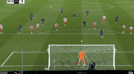 第35分钟,奥尔莫突入禁区,在对抗过后倒地,裁判判罚点球。